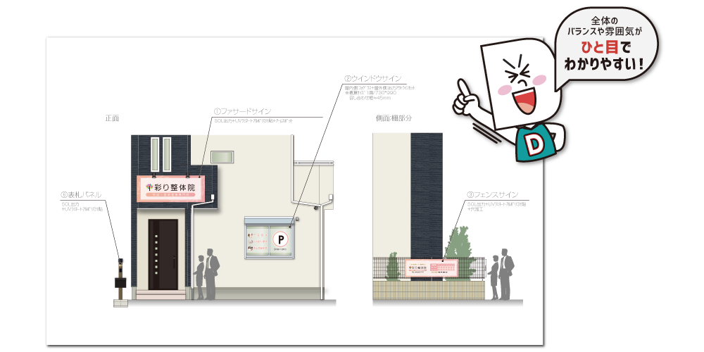 複数看板がある場合、完成イメージを事前に共有できます。
